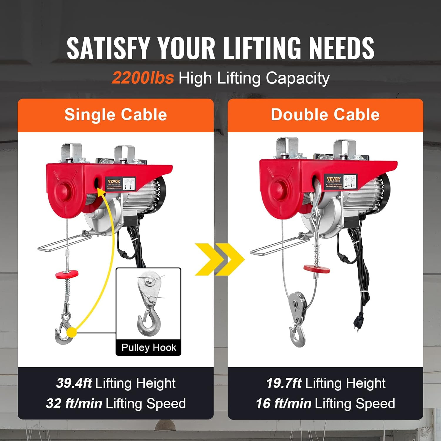 Each hoist comes with a braided steel cable and dual lifting options for versatile operation: